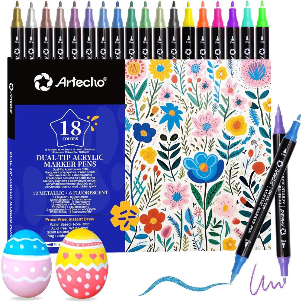 Features: Artecho acrylic paint pens are are made with water-based ink. They are quick drying, waterproof after drying, strong coverage, long-lasting