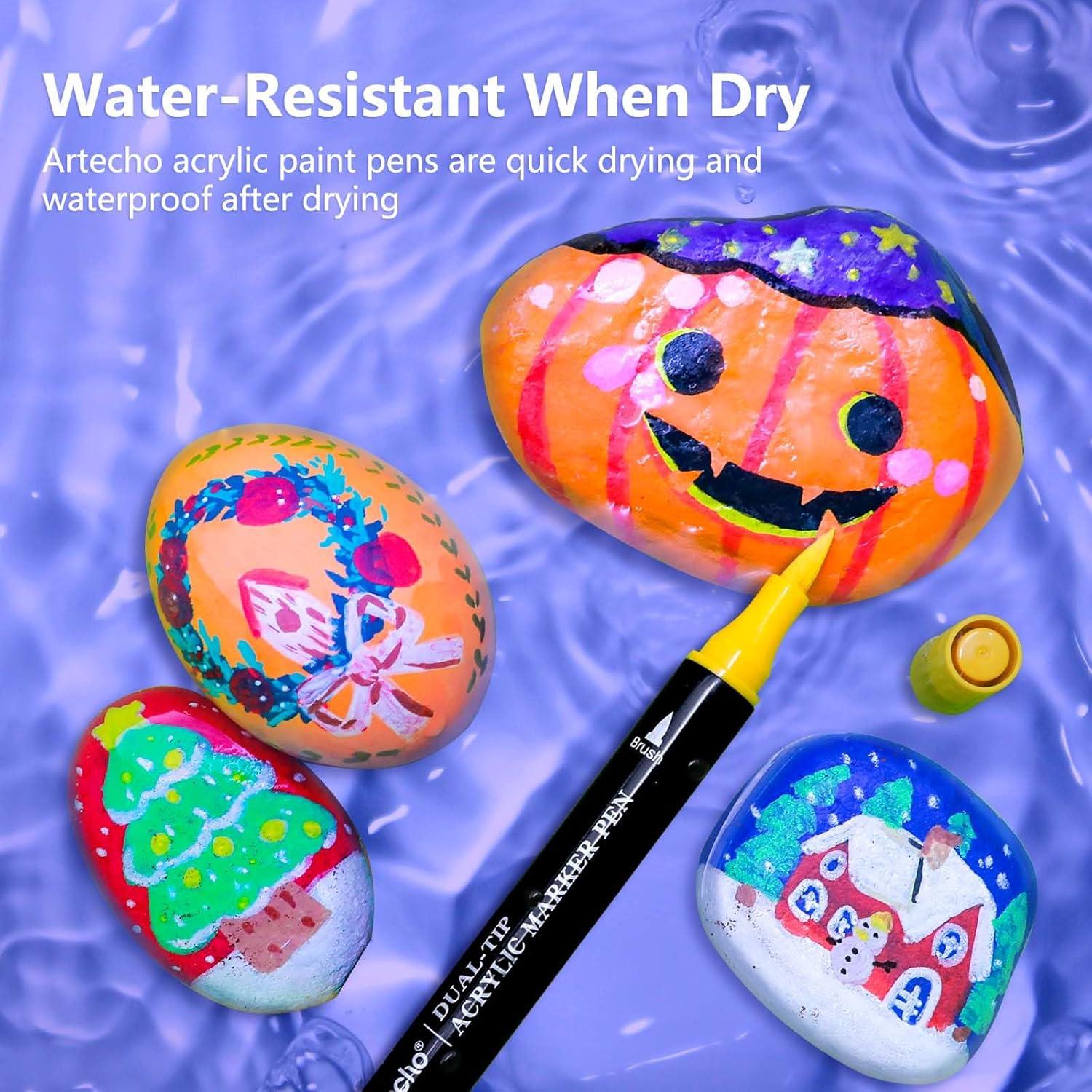 Features: Artecho acrylic paint pens are are made with water-based ink. They are quick drying, waterproof after drying, strong coverage, long-lasting