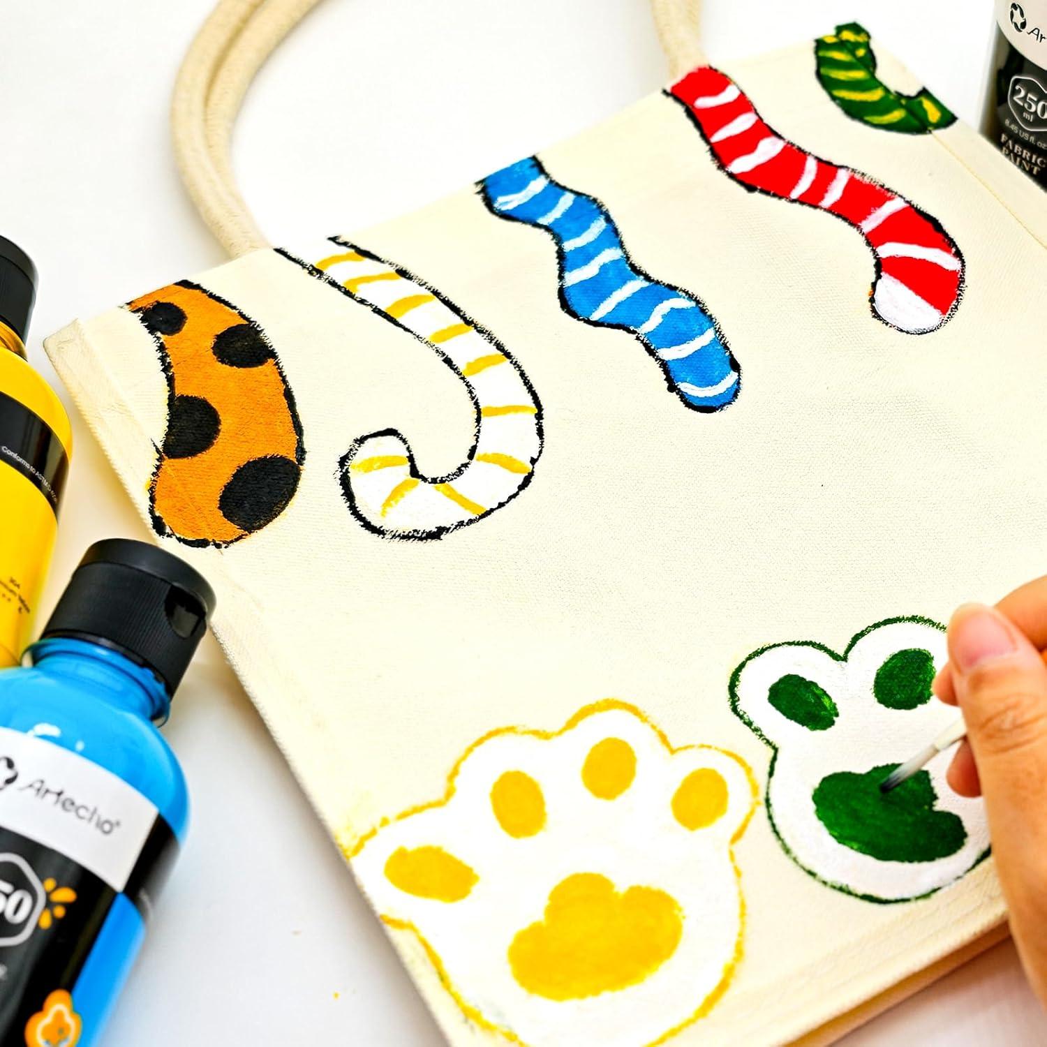 Artecho Black Fabric Paint, 250 ml / 8.45 oz Permanent Clothing Paint for DIY T-Shirts, Tote Bags & Canvas, Washable & Flexible Textile Paint(8 colors)