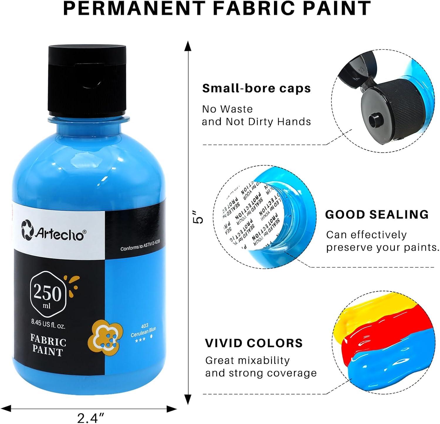 Single Fabric Pigment: Artecho fabric paint 8.45oz/250ml bottle – black fabric paint. The individual package is convenient for you to carry around