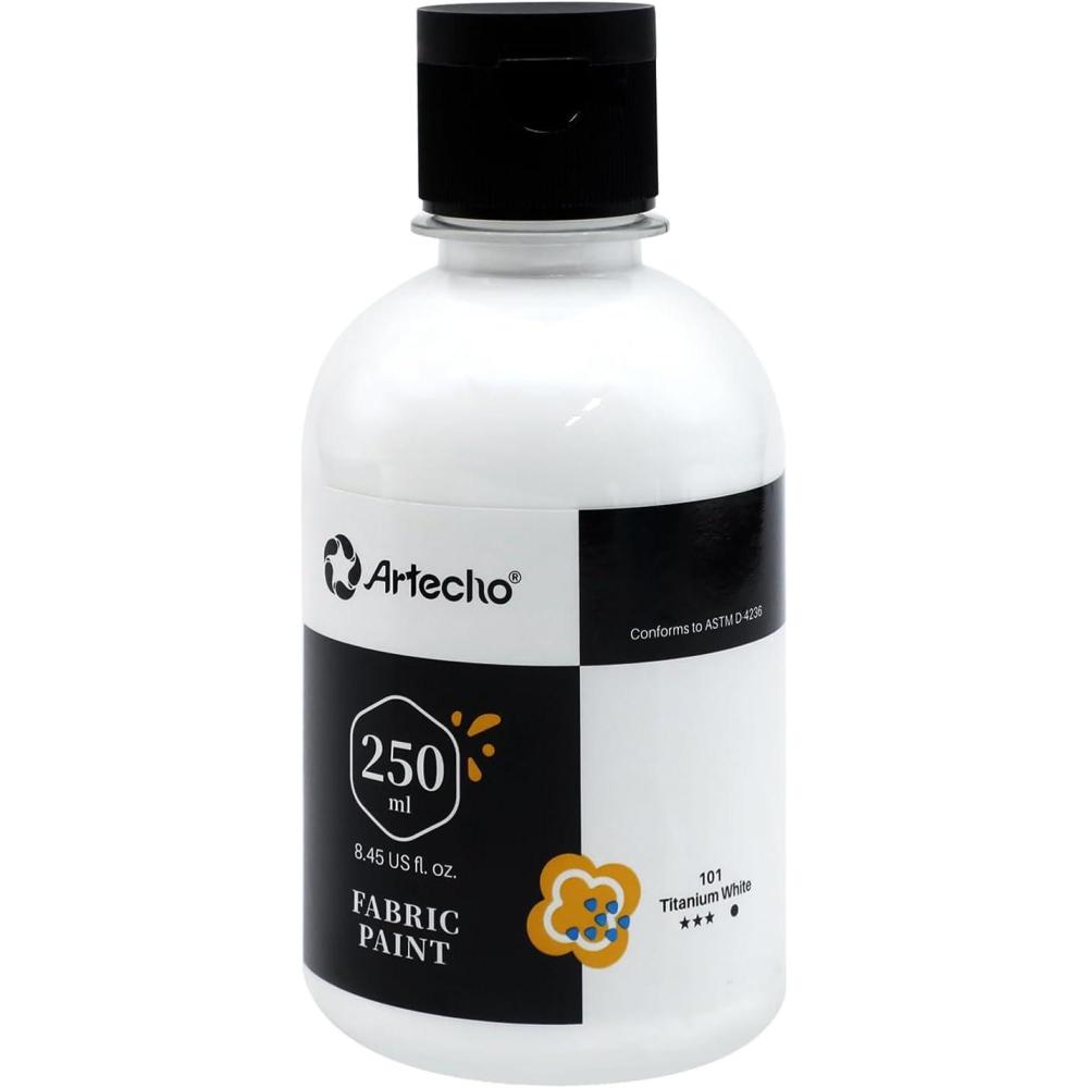 Artecho Black Fabric Paint, 250 ml / 8.45 oz Permanent Clothing Paint for DIY T-Shirts, Tote Bags & Canvas, Washable & Flexible Textile Paint(white)