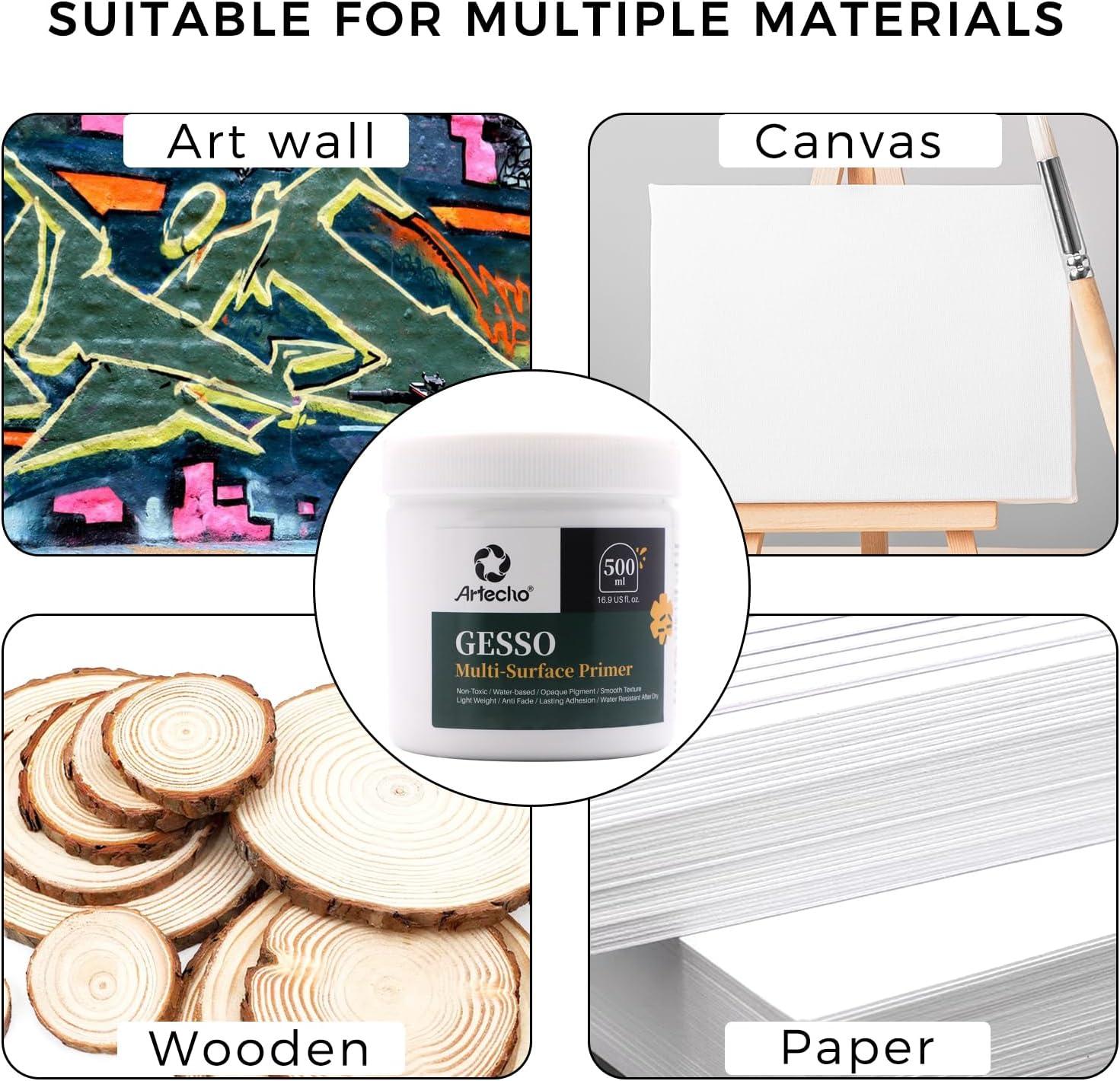 Artecho Black Gesso 16.9oz / 500ml, Gesso Primer for Acrylic Painting(white)