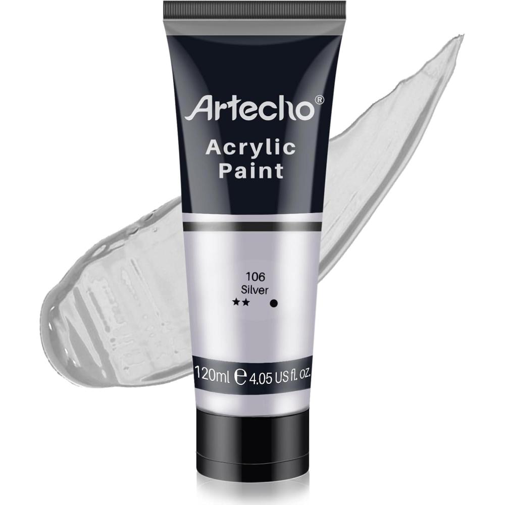 Artecho Blue Acrylic Paint, Cerulean Blue Paint (120ml / 4.05oz) Tubes, Art Craft Paints for Canvas, Rock, Stone, Wood, Fabric, Art Supplies(Silver)
