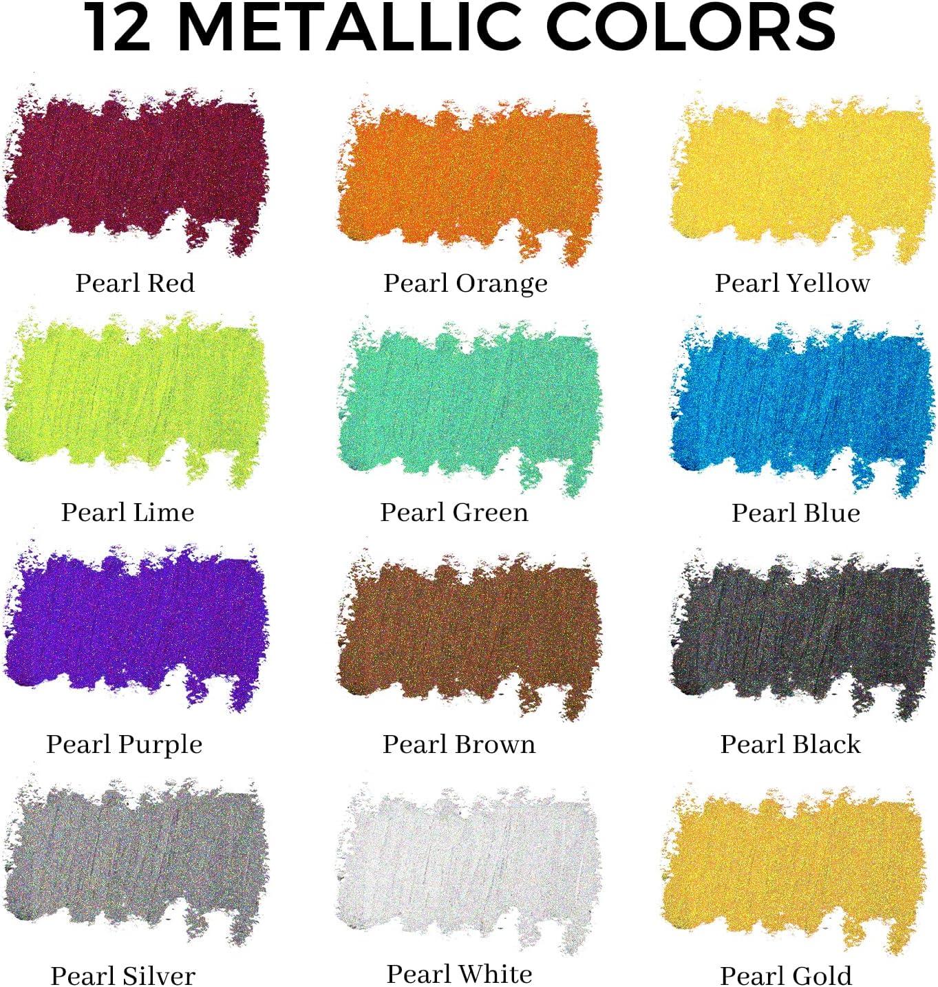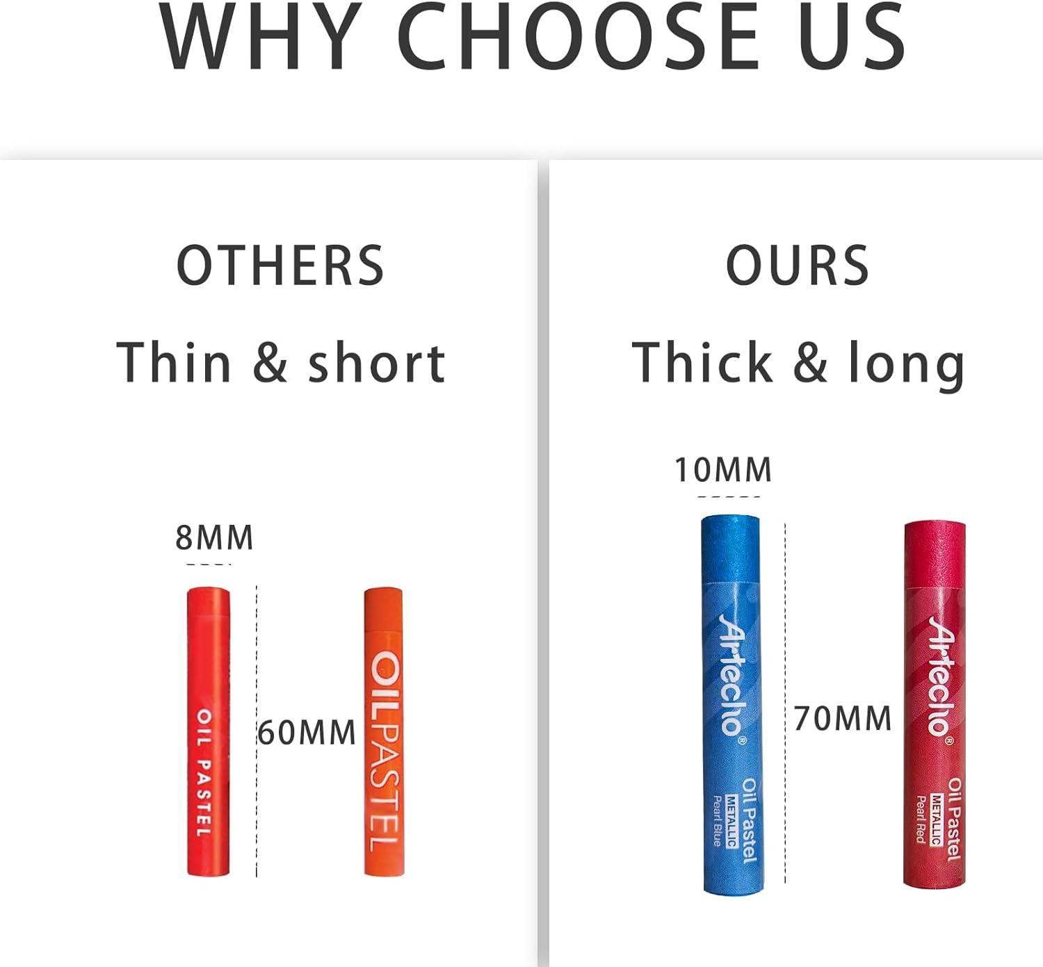 Artecho Oil Pastels Set of 48 Colors, Soft Oil Pastels for Art Painting, Drawing, Blending, Art Supplies for Artists, Beginners, Students, Teachers (10 x 70 mm)(12 Metallic Colors)