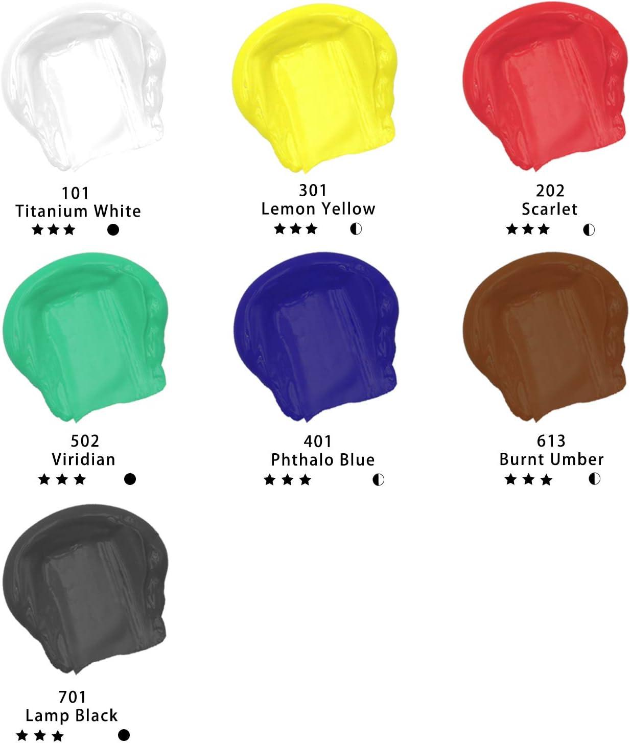 Artecho Professional Acrylic Paint Set, 20 Primary Colors (120ml / 4.05oz) Tubes, Art Craft Paints for Canvas, Rock, Stone, Wood, Fabric, Art Supplies(7 Basic Colors)