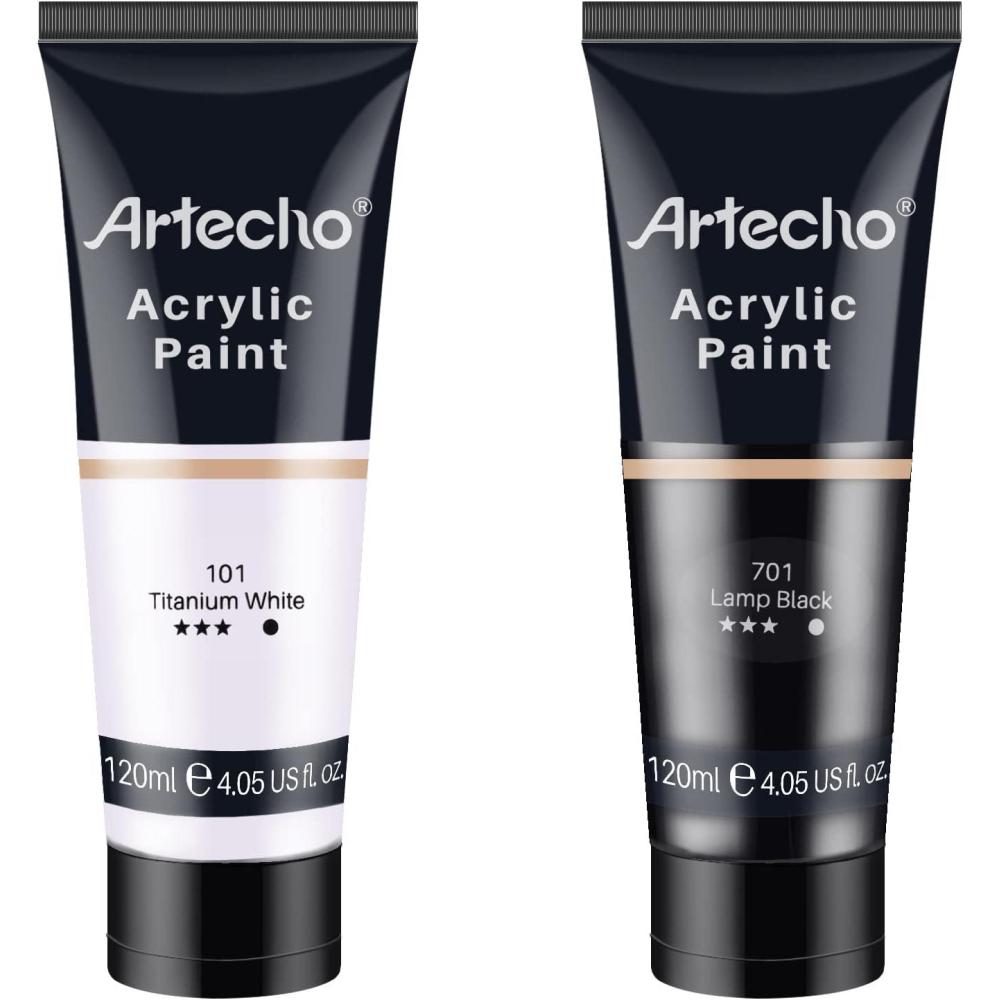 Artecho Professional Acrylic Paint Set, 20 Primary Colors (120ml / 4.05oz) Tubes, Art Craft Paints for Canvas, Rock, Stone, Wood, Fabric, Art Supplies(White and Black)