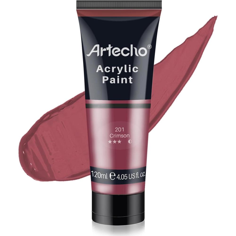 imageArtecho Professional Acrylic Paint White and Black 120ml  405oz Tubes Art Craft Paints for Canvas Rock Stone Wood Fabric Art SuppliesCrimson