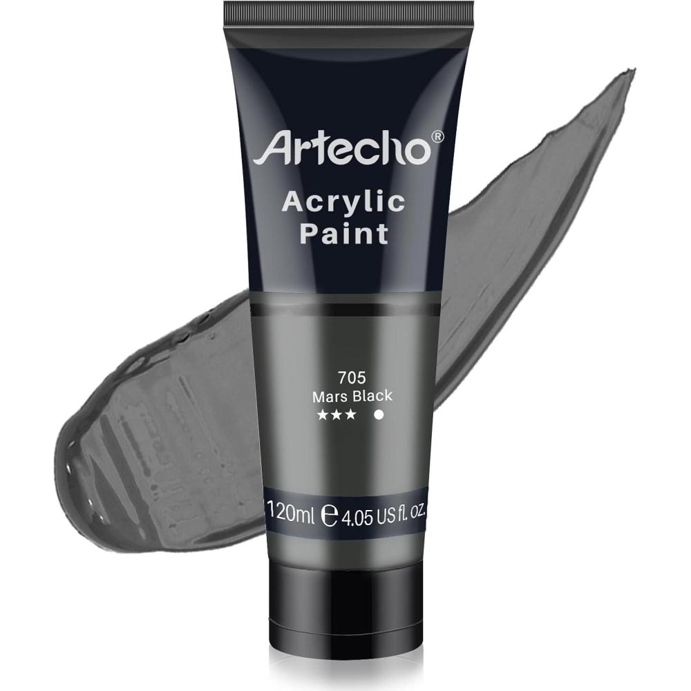 imageArtecho Professional Acrylic Paint White and Black 120ml  405oz Tubes Art Craft Paints for Canvas Rock Stone Wood Fabric Art SuppliesMars Black