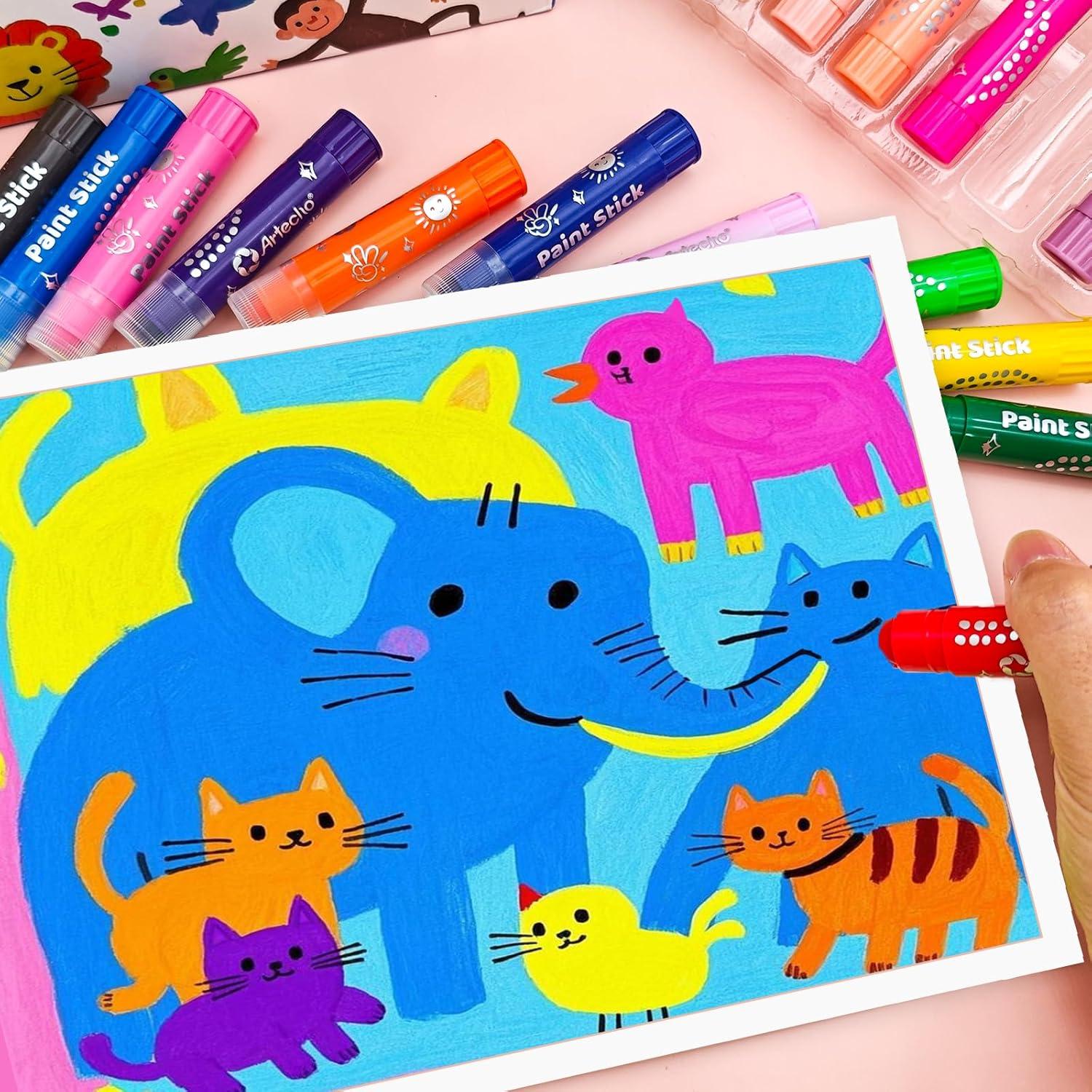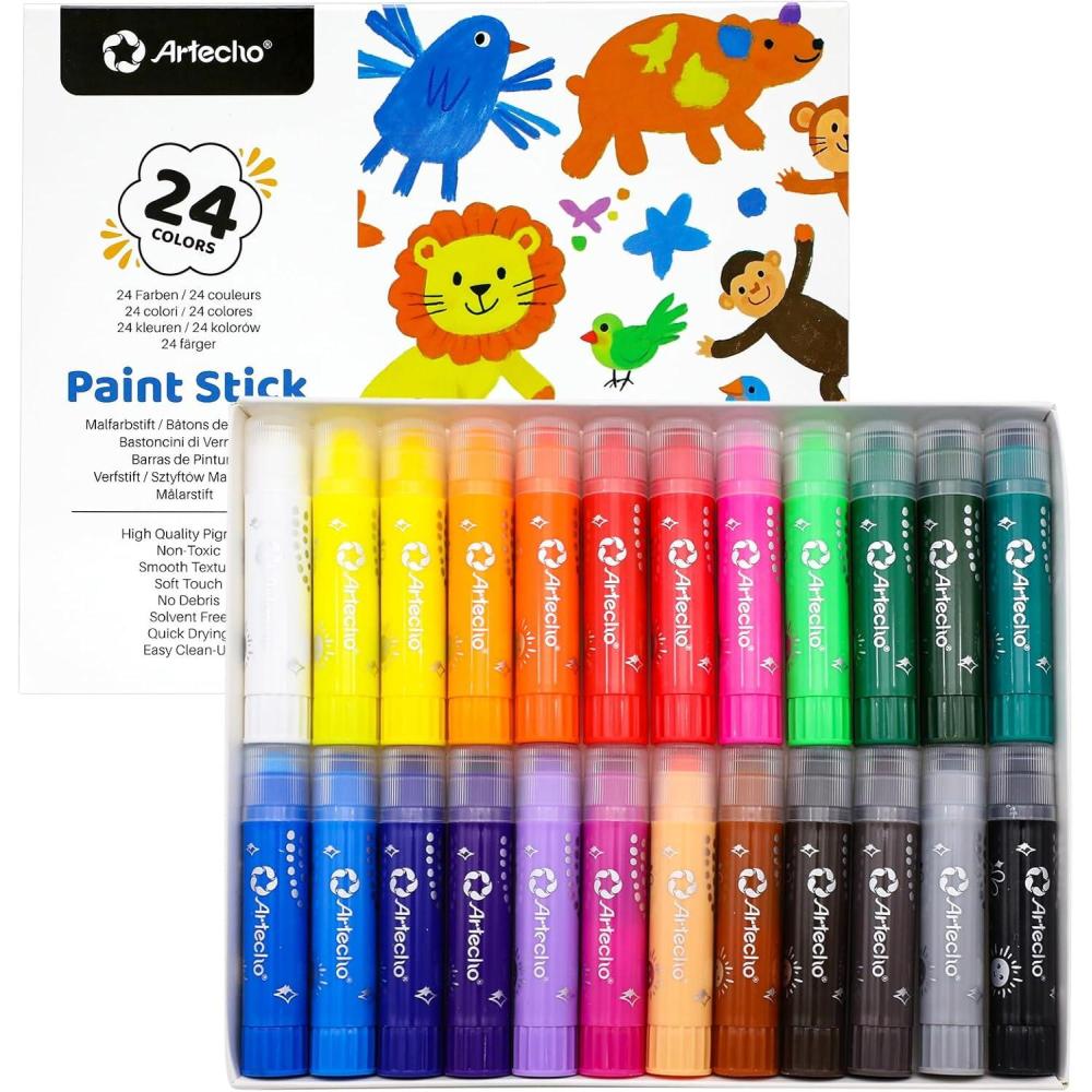 Artecho Tempera Paint Sticks, 12 Neon Colors Washable Paint Sticks(24 Vibrant Colors)