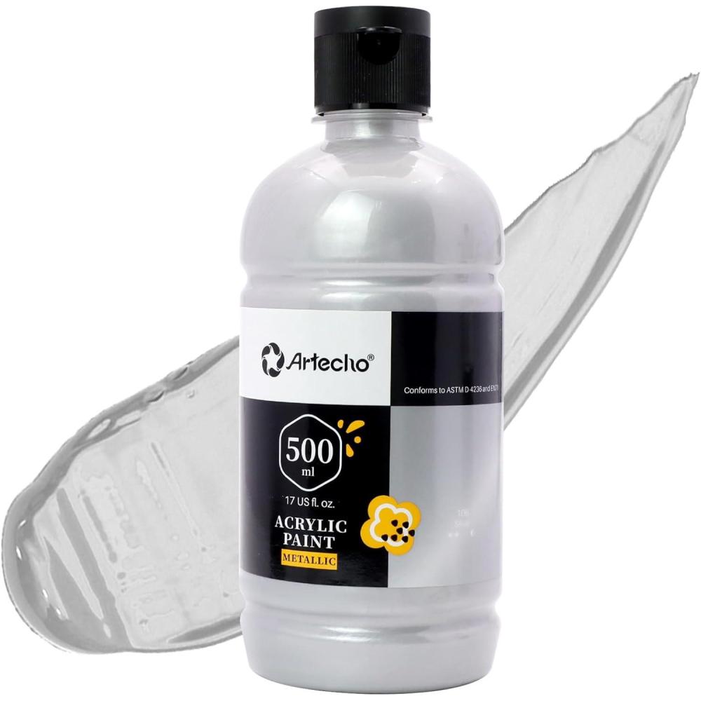 imageArtecho White Acrylic Paint Large Bottle 500ml  17oz White Paint for Canvas Rocks Wood Fabric Ceramic Non ToxicSilver